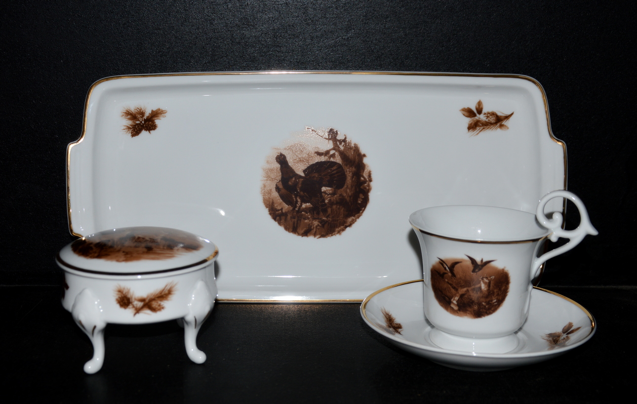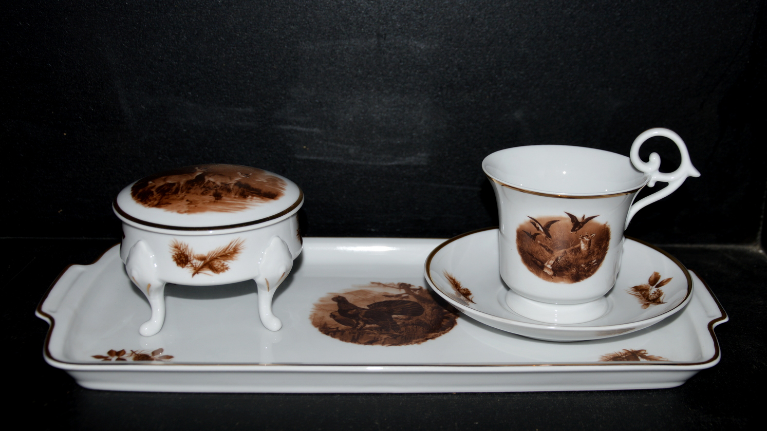 Čajový set pre jednu osobu, lovecké motívy. - Moritz Zdekauer