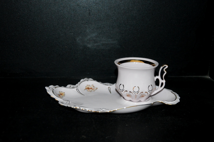 Šálka s tanierikom Lenka labka, dubový list, ružový porcelán - Thun