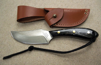 • Sťahovacie nôž R103S Short Blade Skinner, čepeľ z nerez ocele. Rukoväť z rohu vodného byvola, kožené puzdro. Dĺžka noža 210 mm.